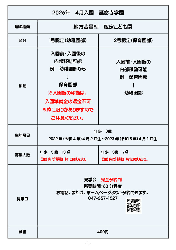 2026年 4月 入園
