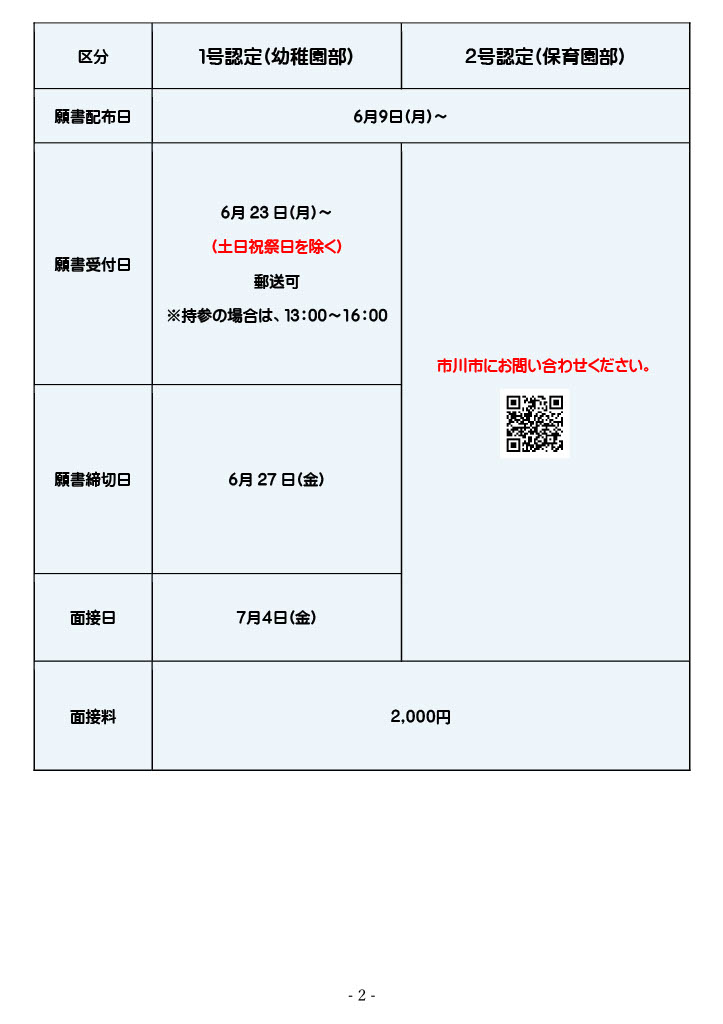 2号認定の募集人数が5名→7名に訂正します。